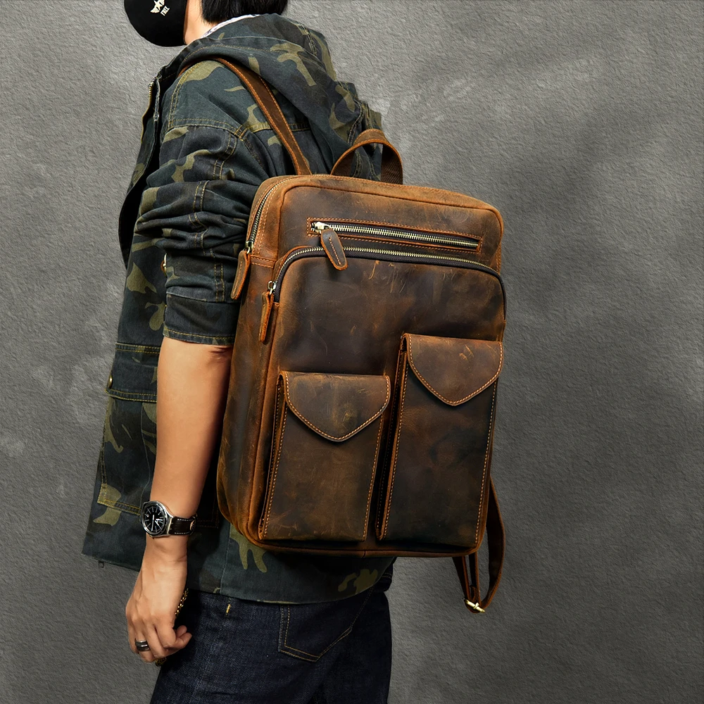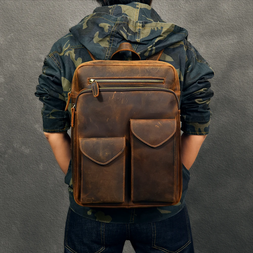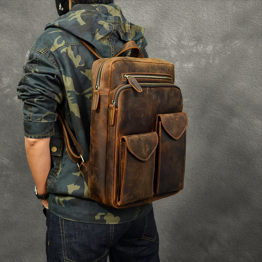 Original Genuine leather Men backpack large capacity crazy horse leather male laptop shoulder bag r