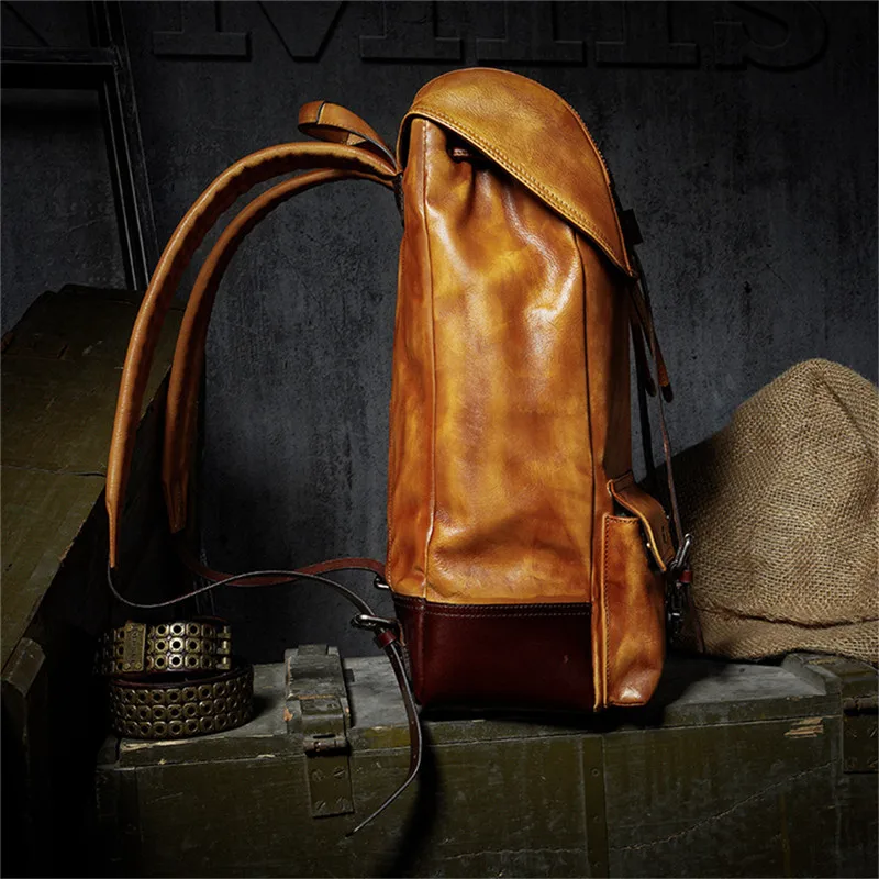ORIGINAL Men's casual minimalist computer bag Cow Leather large capacity backpack travel bag Classic busines