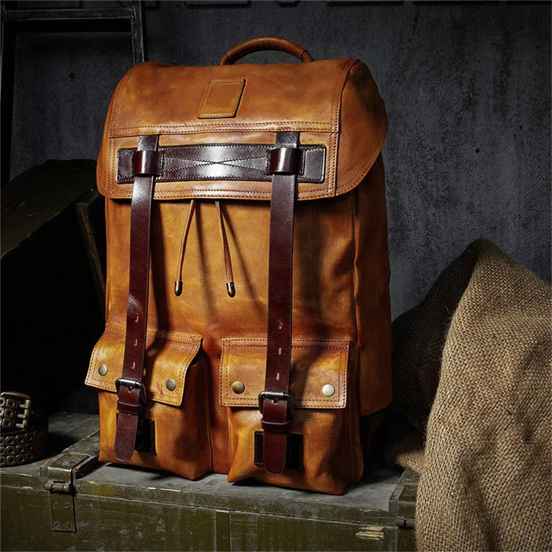 Men's casual minimalist computer bag Cow Leather large capacity backpack travel bag Classic busines