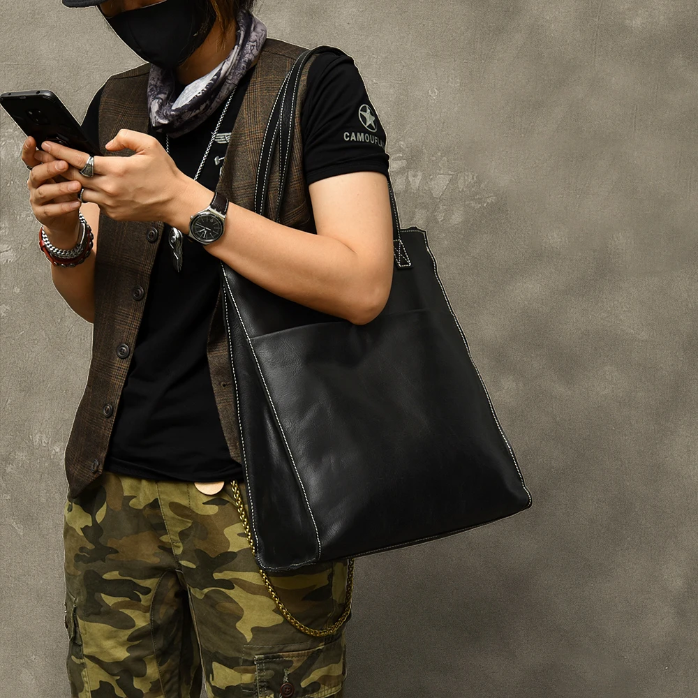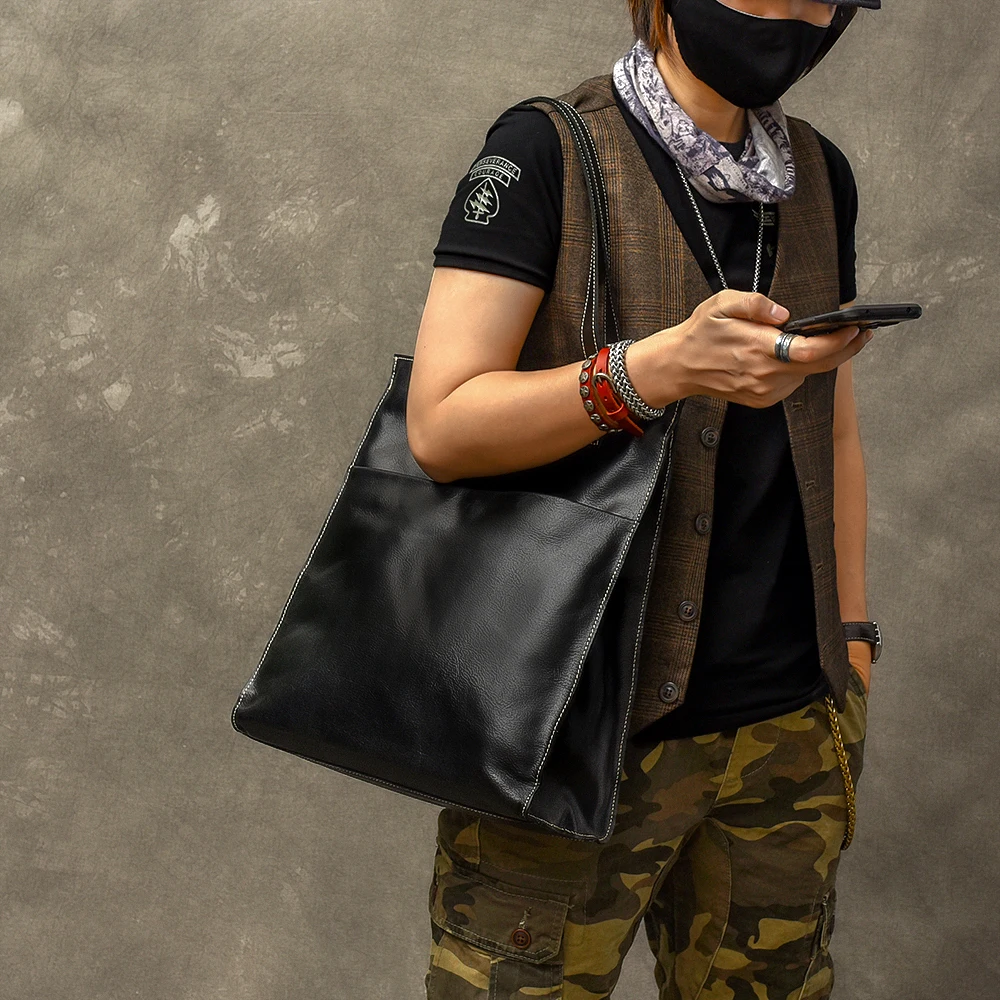 REVIEW TOP SELLER Genuine leather Men's handbags Imported High-end soft black Leather men Tote Bag Retro Tide Hand La